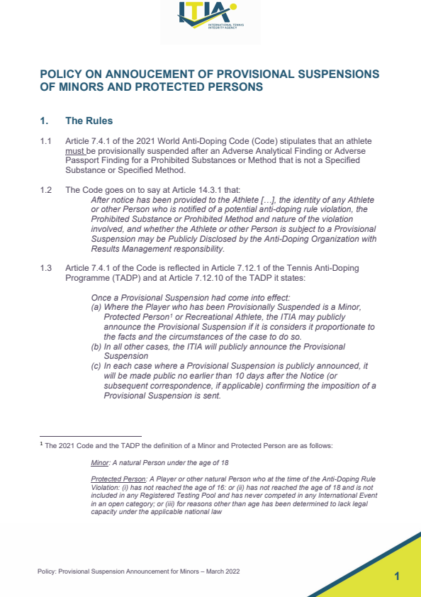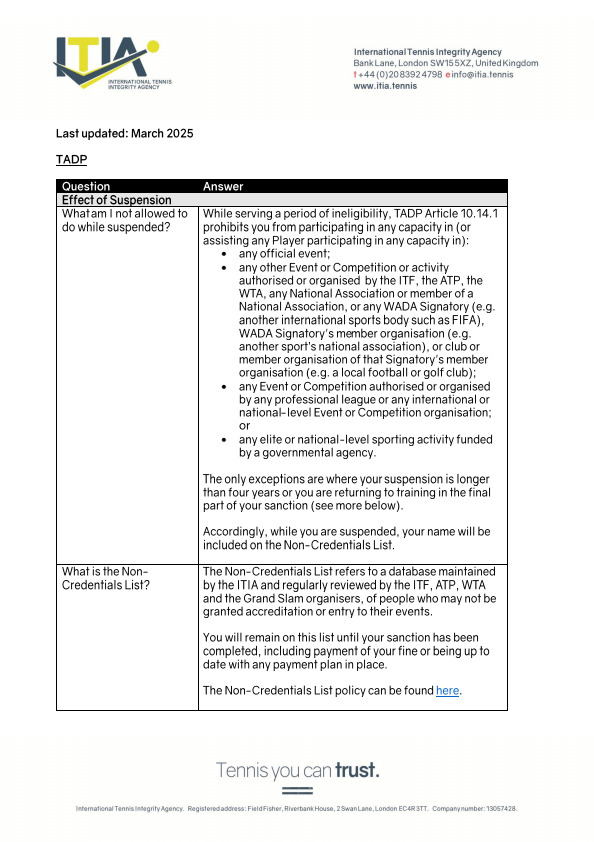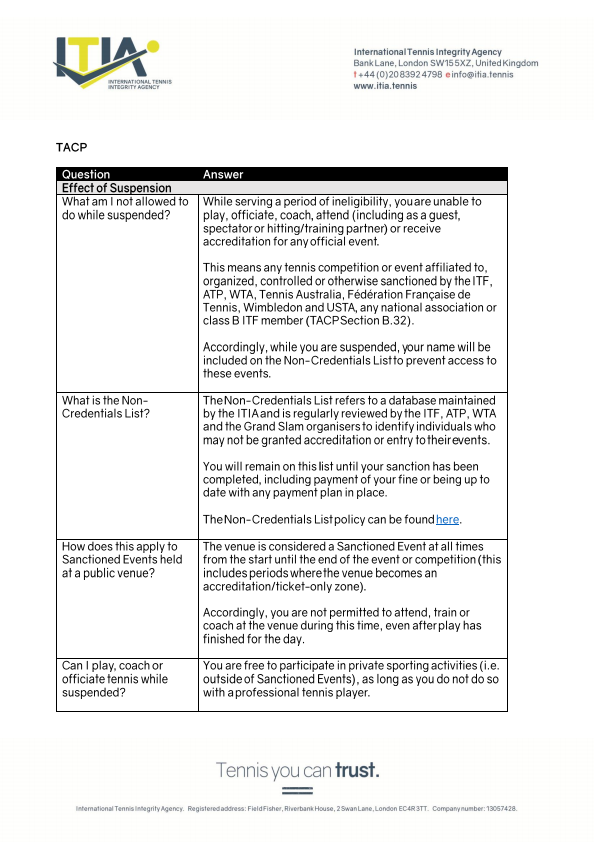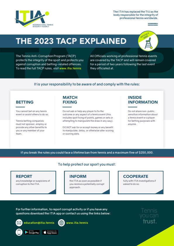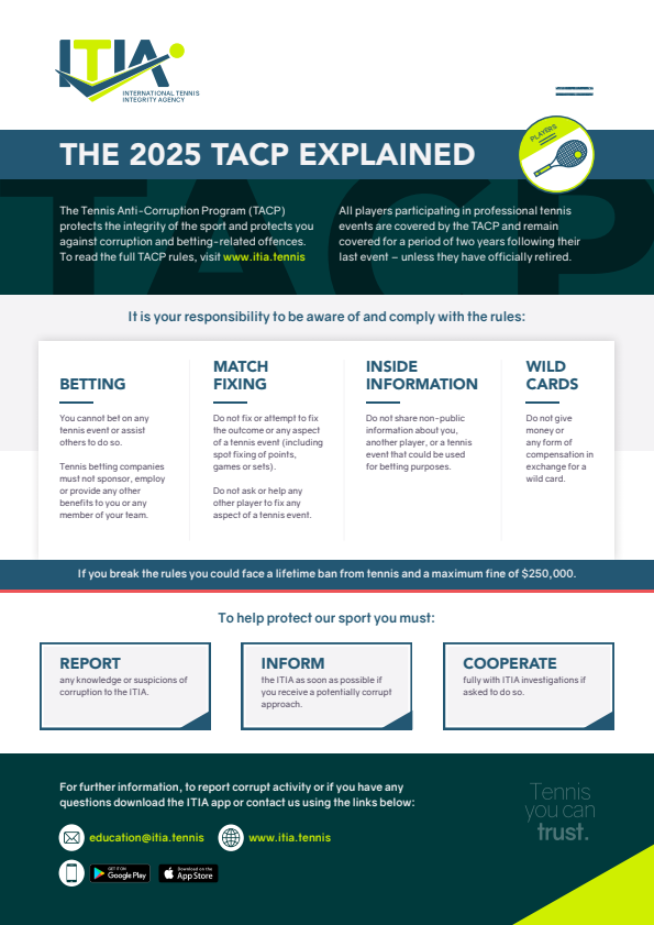 The ITIA safeguards the integrity of professional tennis worldwide.
